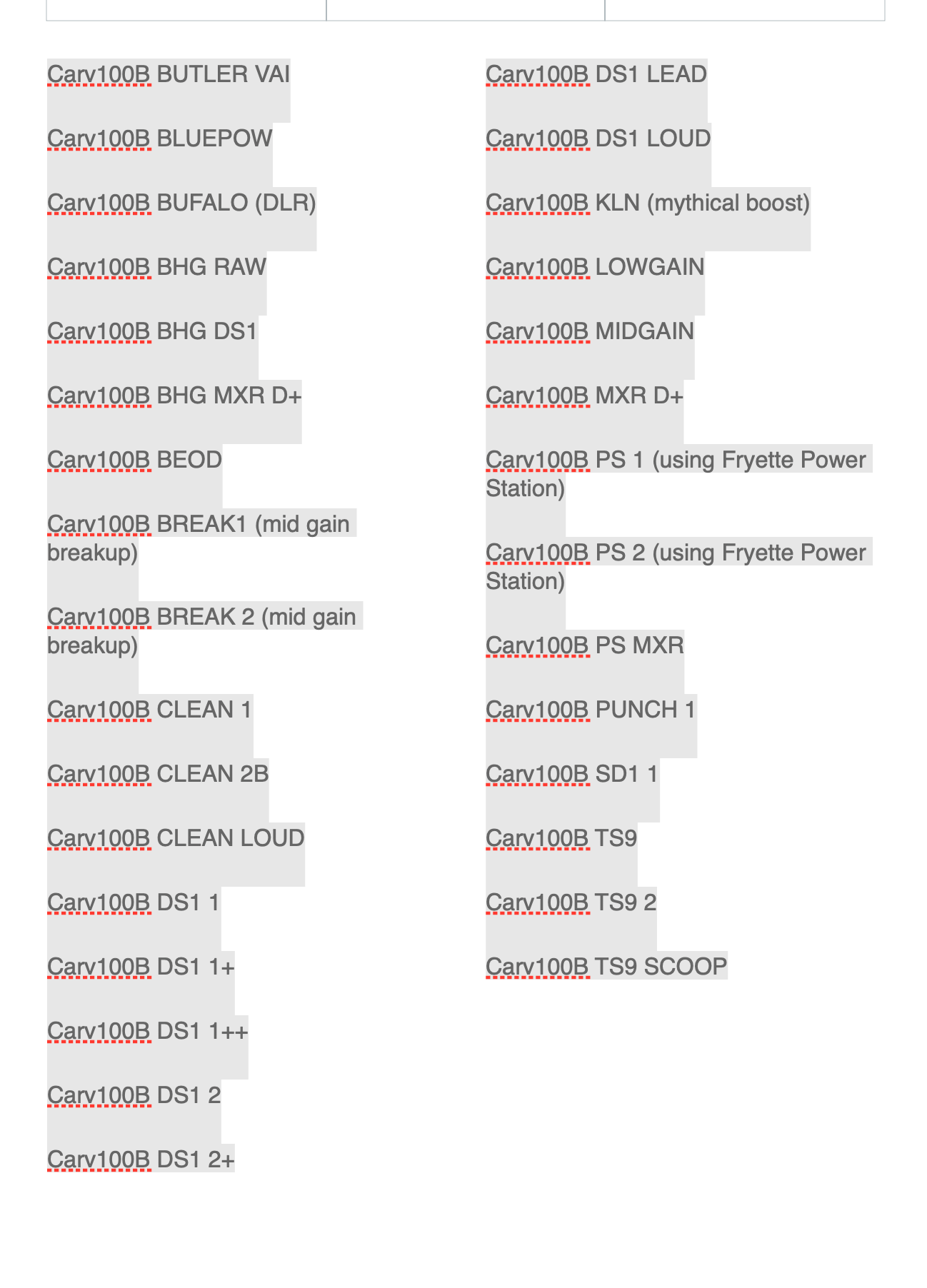 The BHP CARV100B Profile Pack is based on the Carvin X100B 100w 6L6 head. The X100B is the head that Steve Vai used with Frank Zappa, and Alcatrazz, and on legendary recordings such as Flexible, and the Crossroads movie soundtrack. These profiles capture the lush and rich clean tone that the X100B is known for. It's loud and clean and one of the nicer clean tones that could be found in a channel switching 100w head. The straight gain tones from the amp fall in the classic rock realm of gain, but the 5 band graphic EQ allows for greater tonal sculpting. This amp LOVES overdrive pedals, and the profiles capture the classic Vai combinations of X100B + DS1, Distortion Plus, as well as more modern version of the Tube Screamer and EP Booster.