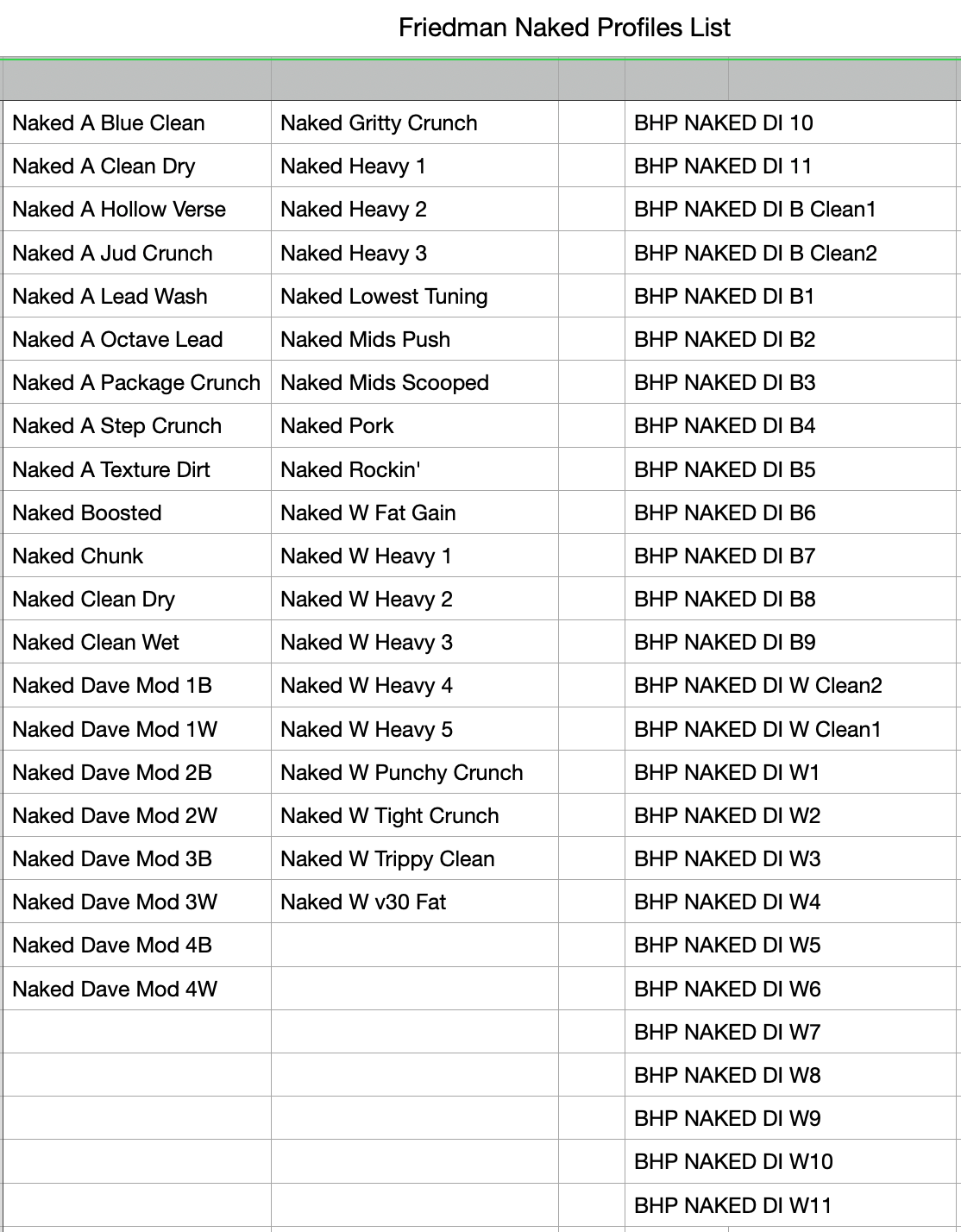 For the first time ever, there is an official Friedman Kemper profiles pack, and it's a killer! The Friedman Naked Kemper Profiles from Big Hairy Profiles. This pack covers 40 STUDIO PROFILES of 2 amps, the black and white (White modded to Naked, Black factory Naked). Each profile is crafted for the closest recreation of the amp sound, as well as 9 presets inspired by record tones of A Perfect Circle.