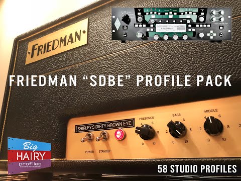 The second official Friedman Kemper profile pack has arrived! Shirley's Dirty Brown Eye is the one of a kind custom amp that was hand wired by Dave Friedman. What else would you call an amp that starts with a 100w BE-100 Brown Eye, and merges it with a unique 100w Dirty Shirley!? The SDBE (Shirley's Dirty Brown Eye) is a 2 channel 100w head with a tuned 4 EL34 power section. The BE is a perfect specimen of the Brown Eye, and the Dirty Shirley channel is something entirely new. It has the big warmth and richness of the DS40, but much more headroom, bigger but tighter bottom end, and a complexity that goes from D-style clean to huge wall of sound higher gain tones!